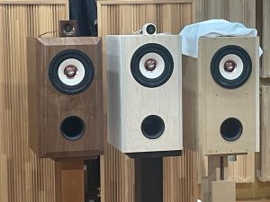 完成品、キット、試作品の比較ですが、試作品はやや軽く、抜けの良い音がするように感じました。完成品とキットの違いはよくわかりませんでした。ただ、横に3台並べている状態での試聴で、わたくしは、試作品左右の中央の場所であったので、完成品・キットとはセンターがずれた状態で聴いていたことになるので、正確な評価は難しかったです。